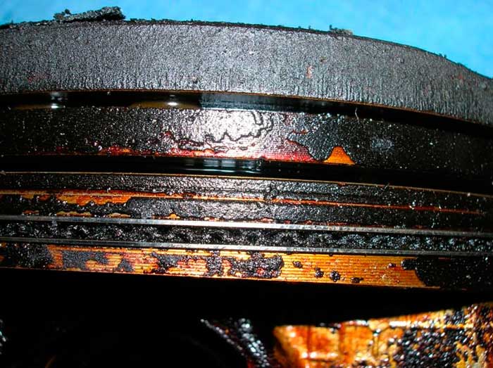 Наиболее важными деталями являются поршня, компрессионные и маслосъемные кольца и канавки под ними. Нагар, который образуется в канавках под кольцами, не дает им возможность плотно находится на своих местах и плотно прилегать к стенкам цилиндра, а это ведет к полному уничтожению двигателя.